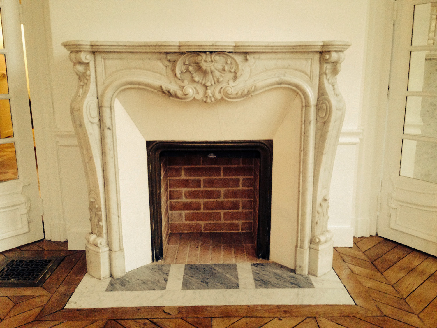 Une cheminée de petites dimensions mais très sculptée ! J’ai réalisé la pose de cette cheminée ancienne du XIXè siècle. En marbre blanc de Carrare, cette cheminée a un rétrécissement en faïence blanche, soutenu par un rideau. J’ai donc réalisé le foyer en briquettes réfractaires, tout cela bien entendu après avoir posé la dalle de marbre du sol. Le raccordement avec le conduit a été fait et la cheminée est prête à accueillir un vrai feu de joie pour les longues soirées d’hiver !
