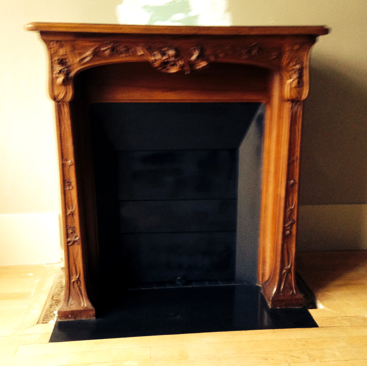 Il y a quelques semaines maintenant, j’ai eu le plaisir de pouvoir installer cette belle cheminée Art Nouveau dans la région parisienne. Un réel plaisir en effet car les cheminées Art Nouveau sont très rares et je n’ai donc pas souvent l’occasion d’en faire l’installation. Cette cheminée était toute petite, environ un mètre de large, mais très sculptée ce qui ajoute à la rareté de cette pièce. Il est probable que cette cheminée soit à rapprocher de l’œuvre de Majorelle.