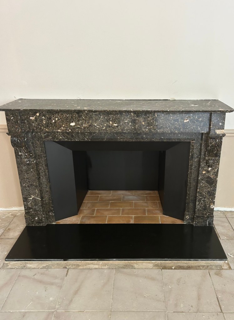 Voici une élégante cheminée en marbre « Brèche nouvelle », de style Napoléon III.