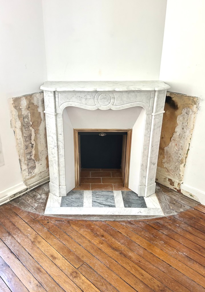 Je vous présente le remplacement d’une cheminée moderne par une cheminée ancienne de style Pompadour.